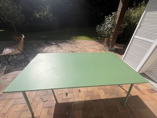 Table de jardin couleur vert cactus : Taille : 180 x 90 x 72 cm De légères rayures sont visibles dans un coin Cette vente ayant lieu dans le cadre de déménagement, je vends