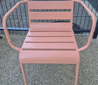 Lots de 4 fauteuils de jardin en métal, couleur saumon. Neuf acheté automne 2024, jamais utilisé. En parfait état.