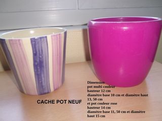 Cache pots (2) Neufs Céramique Au prix de 16 Euros les deux ou 8 Euros pour un cache pot A vendre à Lourdes Dimension pot multi couleur hauteur 12 cm diamètre base
