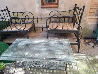 1 canapé 2 fauteuil 1 table en verre Fer forgé Extérieur Tte l'année Coussins à prévoir