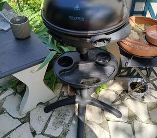 Barbecue sur pieds avec couvercle et tablette de marque SEVENIN, 2000W câble d'alimentation XXL, grande surface de cuisson. Enlèvement et paiement sur place.