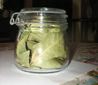 Nous vendons à notre domicile (Donnemarie-Dontilly 77520) des bocaux pour conserve, à mécanisme, contenance 500ml. Ils sont remplis de feuilles séchées de laurier sauce; récolte de