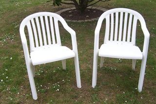 2 Fauteuils de jardin (ou autre) empilable en résine blanche de marque Groffilex.