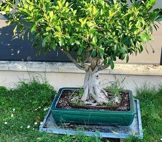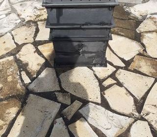 1 Jardinière extérieure en pierre, de forme rectangulaire, de couleur crème. Dimensions intérieures : 75 cm de longueur, 23 cm de largeur, 25 cm de hauteur 1 pot diamètre 35 cms