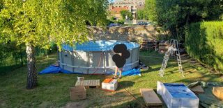 Tondeuse robot de la marque Gardeo Pro de couleur noire, Acheté en juin 2025, Hauteur de coupe : entre 25 et 55 cm Prise en charge jusqu'à 800 m2 Pente maximum du terrain : 35%