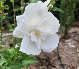 Arbustes HIBISCUS -- Belles fleurs blanches doubles - pour Haies arbustives pour clôture mélangée avec des lauriers palme ou des fusains dont le feuillage persistant -- En isolé