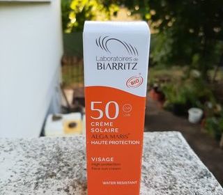 Crème solaire BIO - 50 ml - marque Biarritz - Visage Haute Protection Water résistant NEUF - jamais ouvert - Envoi possible Prix 10 € ENVOI possible à vos frais en Co