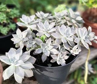 "La PORCELAINE" - rosettes de feuilles triangulaires, épaisses, portées par de grosses tiges rampantes ou retombantes. Plante proche des sedums et des Echeveria aux feuilles se