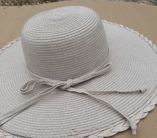 CHAPEAU Capeline , matière soutenue , couleur légèrement grisée , à détail bord festonné