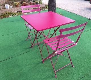 Cause double emploi vends table de jardin avec 2 chaises métalliques très bon état très peu servi.