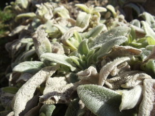 Plante vivace ,couvre sol feuilles laineuses ,argentées ,très douce au touché petites fleurs disposées en épis de couleur rose violacée 2 et 3 € le pot suivant grosseur je ne f