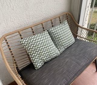 À vendre canapé de jardin avec assise matelas et 2 coussins prix neuf chez Castorama 150 euros (Banc de jardin GoodHome Apolima effet rotin marron). Très bon état. Solide, léger et