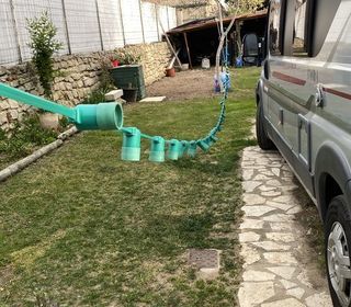 Auvent pour Mobil-home structure en bois longueur 6m x largeur 4 m. Prix à débattre 800€ avec la bâche du toit, 1500€ complet avec les 3 bâches du tour et l'ouverture de porte.
