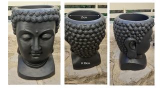 Vends 2 caches pots BOUDDHA le plus grand en ciment H 30 cm ,trou largeur 15 cm le plus petit en résine H 21cm, trou largeur 14 cm 55€ les 2