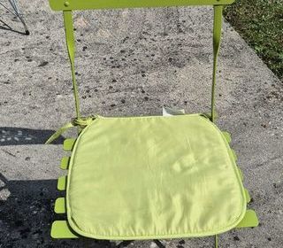Hello, je vends 4 chaises de jardin pliantes, vert pomme. excellent état. 4€ la chaise. A venir chercher.
