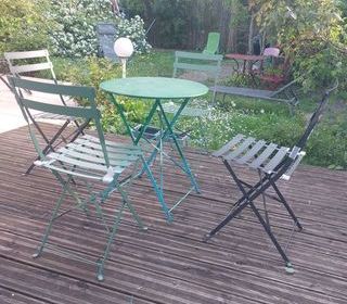 ensemble Table ronde et 4 chaises bistrot ou de jardin 4 chaises pliantes neuves 1 Table ronde 60 cm diamètre (assez bon état ) à repeindre éventuellement libre de suite 110€