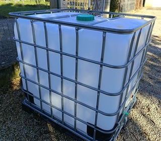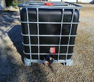 Cuves IBC 1000L NOIRE." anti UV " eau toujours propre. Etat presque neuf , conception de moins de trois mois . Rincée a l'intérieur. Graduation extérieure en Litre et Gallon. Vanne