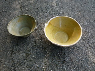 Grésalle verte et jaune verte diamètre 42cm h 21cm jaune diamètre 50cm h 22cm 25€ pièce