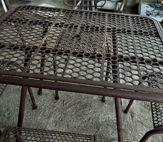 Salon collection" René Maraval " modèles "radar"d'origine De plus en plus rare 4 chaises et 1 table elles sont en bon état, pas désoudées ni tordues Très belle patine