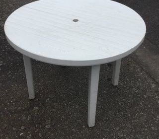 Table de jardin de couleur blanche en résine ronde avec son allonge Dimensions Table : - Ronde : Diamètre 95 Cm - Avec Allonge : 150 cm X 95 C Dimensions allonge : largeur 55