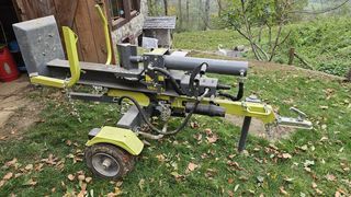 TRES PEU UTILISEE ( 30 mètres cubes pas plus) 22 tonnes tractable livraison possible (après paiement) infos du fabricant : Le fendeur de bûches vertical sur remorque 7CV ? 2