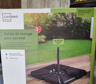 Dalles de lestage pour pieds de parasol ( doublon). Dans son colis. Voir photos pour descriptif complet. Neuf.