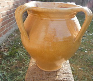 Je vends une superbe poterie à 4 hanses artisanale en terre cuite rouge, émaillée ocre .Neuve .Hauteur 40 cm, diamètre 28 cm