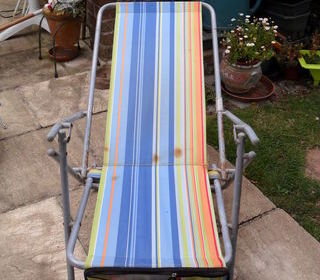 siège de plage avec poches devant pour mettre bouquin, lunettes... juste un peu de rouille sur la toile du siège et sur les tiges métalliques (cf. photo) mais rien de méchant
