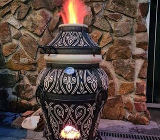 Four tandoor Saffron Capacité : 125 L Hauteur avec couvercle : 121 cm Hauteur sans couvercle : 106 cm Profondeur : 60 cm Largeur : 59 cm Diamètre du col : 33 cm Épaisseur