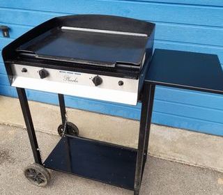 très pratique pour les repas d été, grande plancha long 59 sur 40 surface de chauffe,sur chariot à roulettes hauteur 95cm mise à prix 60 euros ,si intéressé mon numéro de portab,r