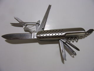 Couteau Suisse comprenant 9 outils différents pour un outillage sans encombrement à portée de main, idéal pour un usage domestique, randonnées, ballades... Facilement transportab