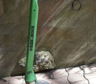 Coupe bordures électrique Black et Decker 200W équipé de sa bobine de fil et d'un passe fil de rechange. Diamètre de coupe : 22 cm.