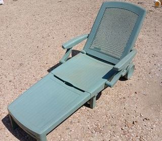 bain de soleil pvc à roulettes avec coffre / état neuf plusieurs réglages / repliable