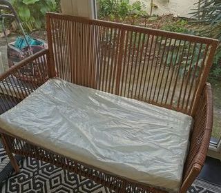 Chaise en faux rotin avec coussins sous plastique. Idéale pour un usage intérieur extérieur pas monter pièces neuf 80euro