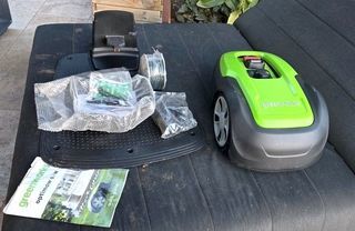 vend robot tondeuse thermique, totalement neuve, jamais servi, 300 M2, capteur d'obstacles, tout le matériel vendu avec. achat neuf 300 euros