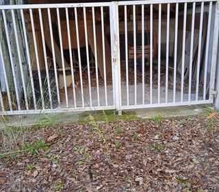 Barre noire en fer forgé de 2,25 m de hauteur en exellent état. Pointue à la base pour fixation dans le sol. Possibilité d'en avoir une 2ème (total 19 euros) A prendre sur plac