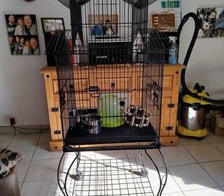 cage pour oiseaux avec grille et tiroir de fond avec ses accessoires dimensions 50 sur 50cm hauteur 180cm le tout en très bon état a venir sur Nans les pins paiement en espèc