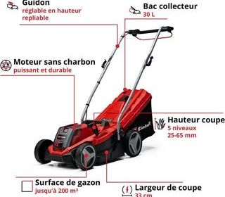 Tondeuse à gazon sans fil EINHELL GE-CM 18/33 Li Kit Power X-Change - 18V - Batterie 4.0 Ah la batterie est vendue avec ainsi que son chargeur. Neuve, erreur de commande