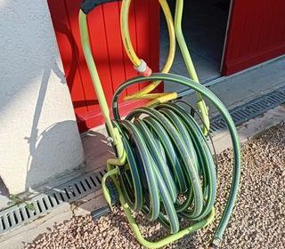 tuyau d'arrosage 15 m paroi triple épaisseur NEUF chariot enrouleur 2 roulettes ETAT MOYEN