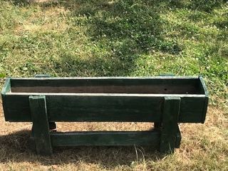 Mangeoire en bois d'autrefois, transformée pour bac à fleurs Longueur : 1,16m , largeur : 0,25m , hauteur : 0,44m Un authentique objet d'autrefois, qui suscitera l'admirati