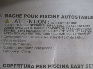 Bâche de piscine INTEX de 3.66 m de diamètre, NEUVE, jamais utilisée, jamais dépliée. 10 euros, prix FERME. Pas d'expédition.