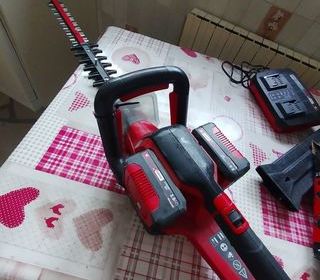 taille haies à accumulateur encore sous garantie ;inadapté à mon jardin marque:Einhell longueur de lames 720mm longueur de coupe 650mm écartement des dents 30mm protège main