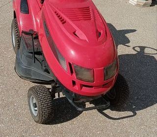 Tracteur tondeuse 14 chevaux 530 cm³ moteur Honda. Transmission hydrostatique à pédale inversement pour marche avant et marche arrière. Enclenchement des lames par un bouton. En