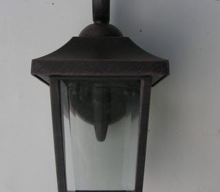 Lampe en aluminium noir composée de 4 faces vitrées en verre bizeauté - Cette lampe n'a jamais été utilisée - Hauteur totale 28 cm - Hauteur de la partie eclairage 20 cm - Largeur