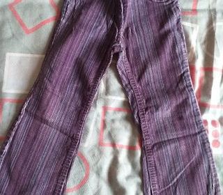JEAN FILLE COULEUR MAUVE RAYE TAILLE 3 ANS 2 POCHES EN BIAIS SUR DEVANT 2 POCHES ARRIERE PLAQUEES TAILLE ELASTIQUE A L'ARRIERE ET DEVANT LARGEUR TAILLE 21 CM HAUTEUR 53 CM 98%