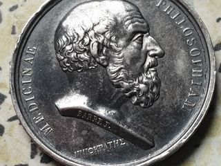 Médaille-Jeton en Argent 1789 Médecine gravé sur tranche ( ARGENT ) Medicinae Philosophiam Signé Barre. F. Studio Et Arte Soc.Med. Lugd.Inst. 1789 Diam 3 cm / 11 grs / ép 2