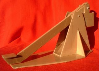 Très jolie maquette d'un trébuchet de l'époque médiévale. Ce modèle est en bois et en carton, il est livrée en kit avec les pièces prédécoupées sur une planche de carton. Cet