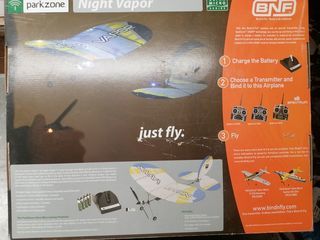 Parkzone Night Vapor état de vol avec qq pièces de rechange plus accus, chargeur inclus ! Compatible avec Spektrum DX5e, DX6i, DX7s.