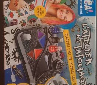 L'atelier du tatouage Clementoni (neuf jamais ouvert) TARIF 18€ Dès 8 ans. Coffret créatif pour permettre à votre enfant de réaliser différents tatouages. Ce jeu propose de nomb