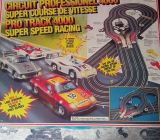 Vends circuit professionnel ARTIN 4000, course de vitesse. 4 pistes complètes accessoires (Rails, Piliers etc...) + 4 voitures. Manettes à vérifier. A prendre sur place avec